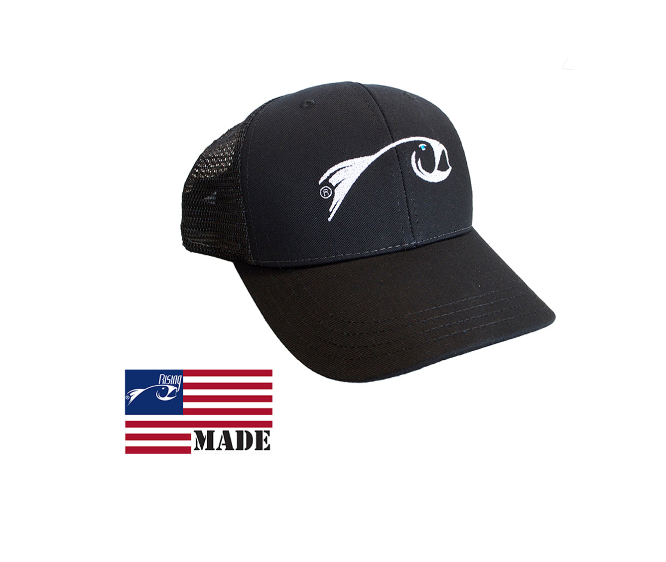 AMERICAN MADE Black Snap Back RISING Trucker Hat